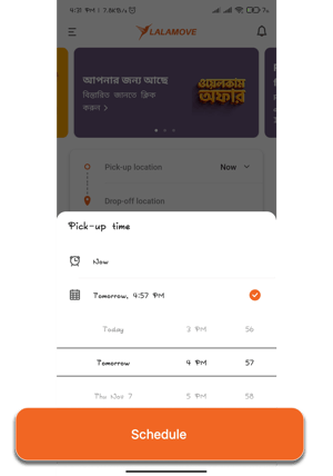 লালামুভ অ্যাপ ব্যবহার করে আপনি খুব সহজে এবং দ্রুত প্রি-শিডিউল ডেলিভারি বুক করতে পারবেন। কয়েকটি ক্লিকের মাধ্যমেই ডেলিভারি সময় নির্ধারণ করতে পারবেন এবং ড্রাইভার অগ্রিম সময় অনুযায়ী আপনার পণ্য পৌঁছে দেবে। আপনাকে শুধু ডেলিভারি সময় ও তারিখ নির্বাচন করতে হবে, বাকিটা লালামুভের উপর ছেড়ে দিন।