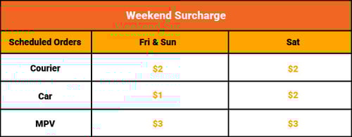 There would be an all-day high demand surcharge applicable islandwide for all vehicle types per order. The high demand surcharge will be based exclusively on the base fare and mileage fare only; it will exclude the return trip fee, additional helper fee, tailgate fee, purchasing service fee, multi-node surcharge, CBD/District surcharges and/or Holiday/Festive surcharge. The high demand surcharge pricing may vary because of factors such as, but not limited to, demand-supply ratio, booking timing, traffic conditions and routing information. For accurate pricing on your specific delivery, please refer to the final price as indicated on the platform.