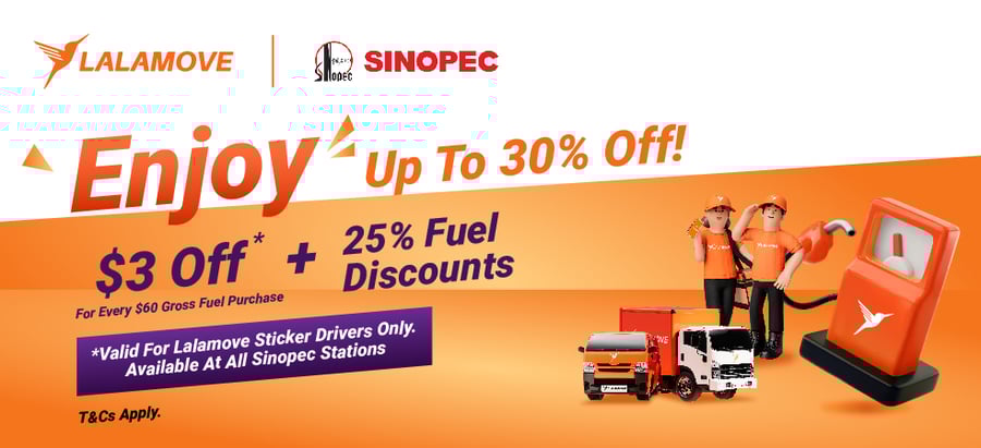 Redemption method: To enjoy this $3 off promotion, simply present your Lalamove license for verification purposes before payment during the promotion period. Lalamove driver-partners shall present your [Sticker page] along with your Lalamove app to enjoy the 25% instant discount and the $3 off promotion, which makes up to 5%.
