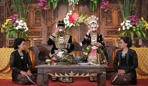 Jika biasanya resepsi pernikahan dengan konsep adat identik dengan banyak penggunaan ornamen dekorasi, dalam konsep adat minimalis ini ornamen adat hanya dipilih yang dapat mewakilkan adat yang ingin ditonjolkan.