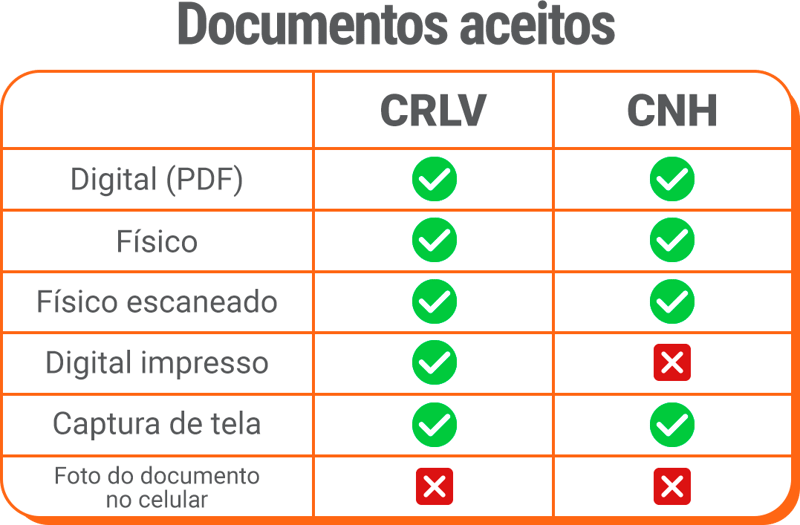 Exemplos de veículos aceitos: