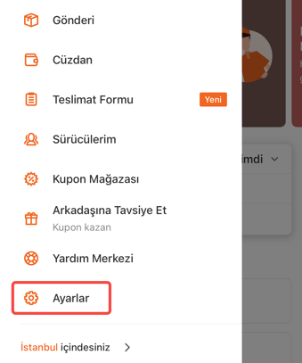 1. Lalamove uygulamasını aç2. Yan menüden “Ayarlar”a gir