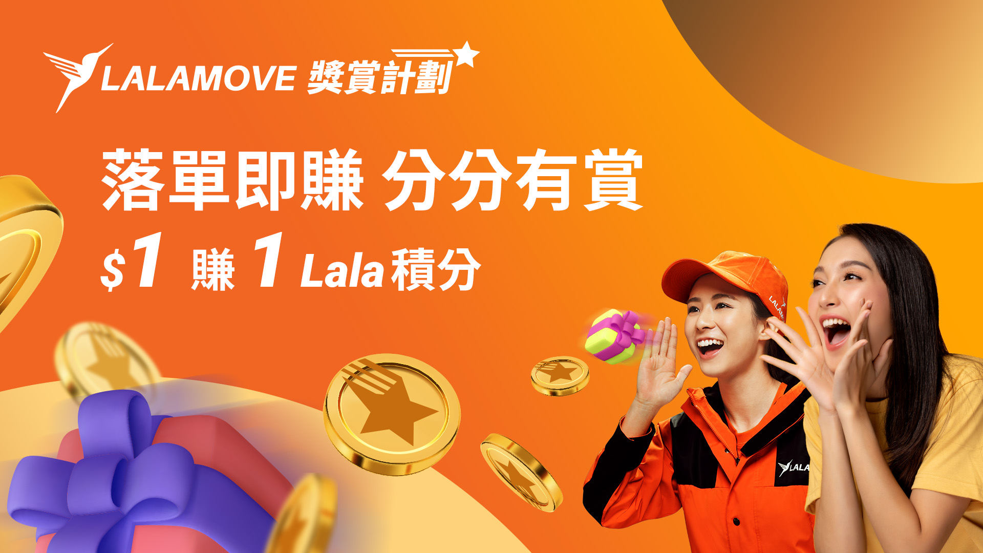 Lalamove 用戶每次成功下單即可獲取Lala積分,每消費港幣1元可賺取1點Lala積分。積分可兌換多個品牌的獨家餐飲和購物獎賞及優惠券,包括Decathlon、eCup、Green Common、Häagen-Dazs、Pacific Coffee、HKTVmall、OpenRice、百佳超級市場和一田百貨等。