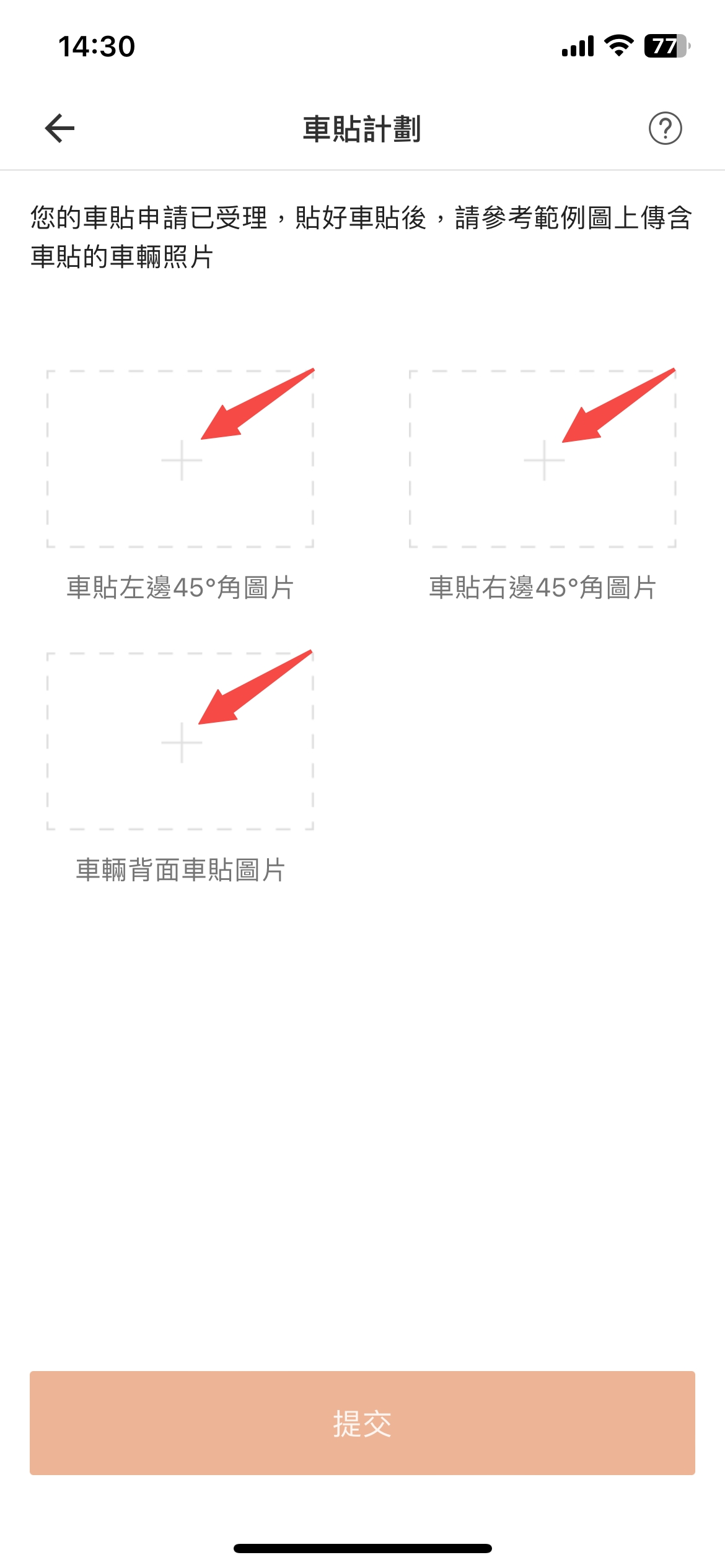 師兄姐必須每月於一號至七號於Lalamove 司機版Apps 內提交三張車貼相片,並且通過系統審核,方為當有有效車貼紀錄。