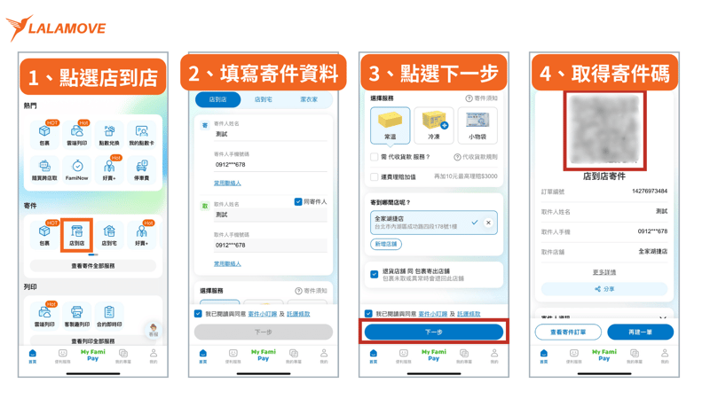以下是簡單的服務流程,讓你快速了解如何使用全家的店到店寄件功能。