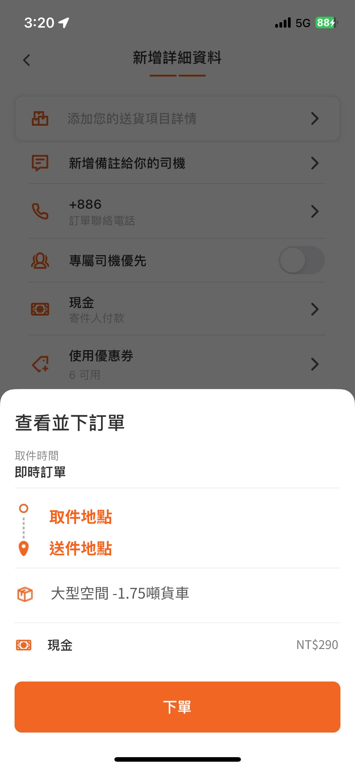 請留意司機訊息與來電,了解配送細節