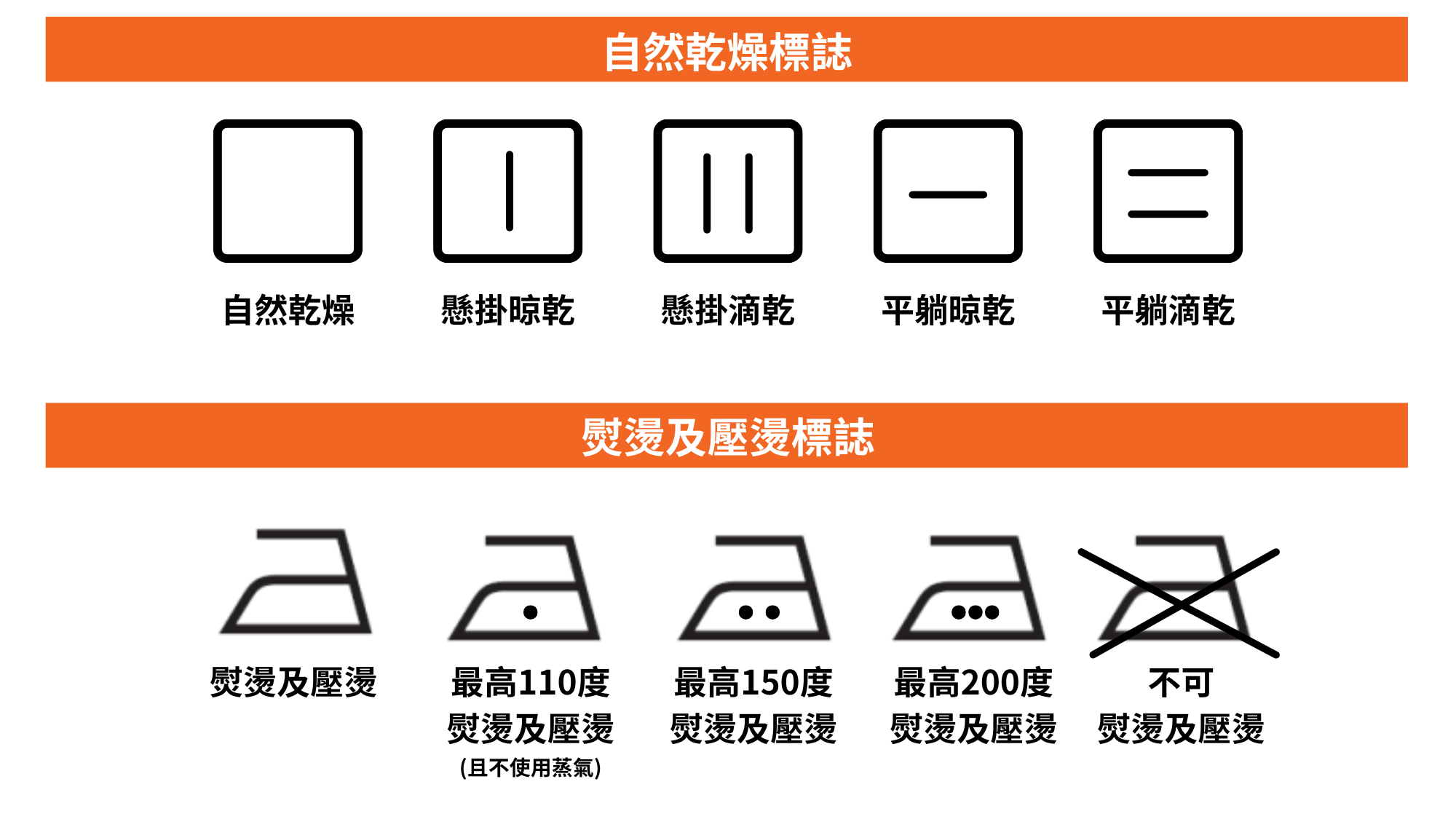 - 熨斗內三點:高溫熨燙(適合棉麻材質)。